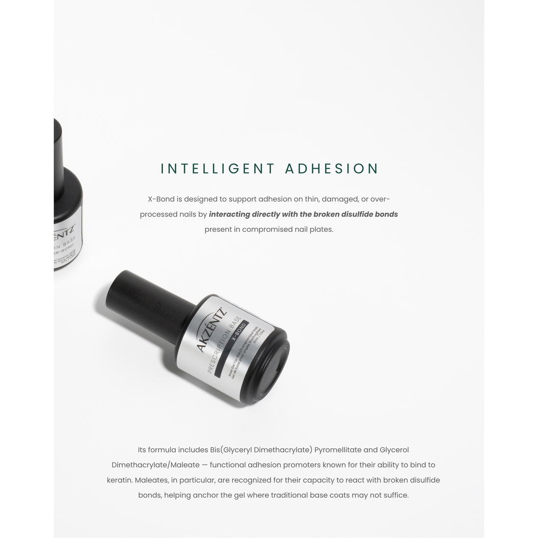 PRESCRIPTION X-BOND is ideal when working with thin, over-filled, or otherwise compromised nails. Now part of the Prescription Base series, X-Bond has been reformulated to be TPO-Free and HEMA-Free, without compromising the trusted adherence performance professionals worldwide rely on. It promotes longer wear on clients experiencing retention issues, helping compromised nails grow out stronger over time. 15ML/0.50Z
