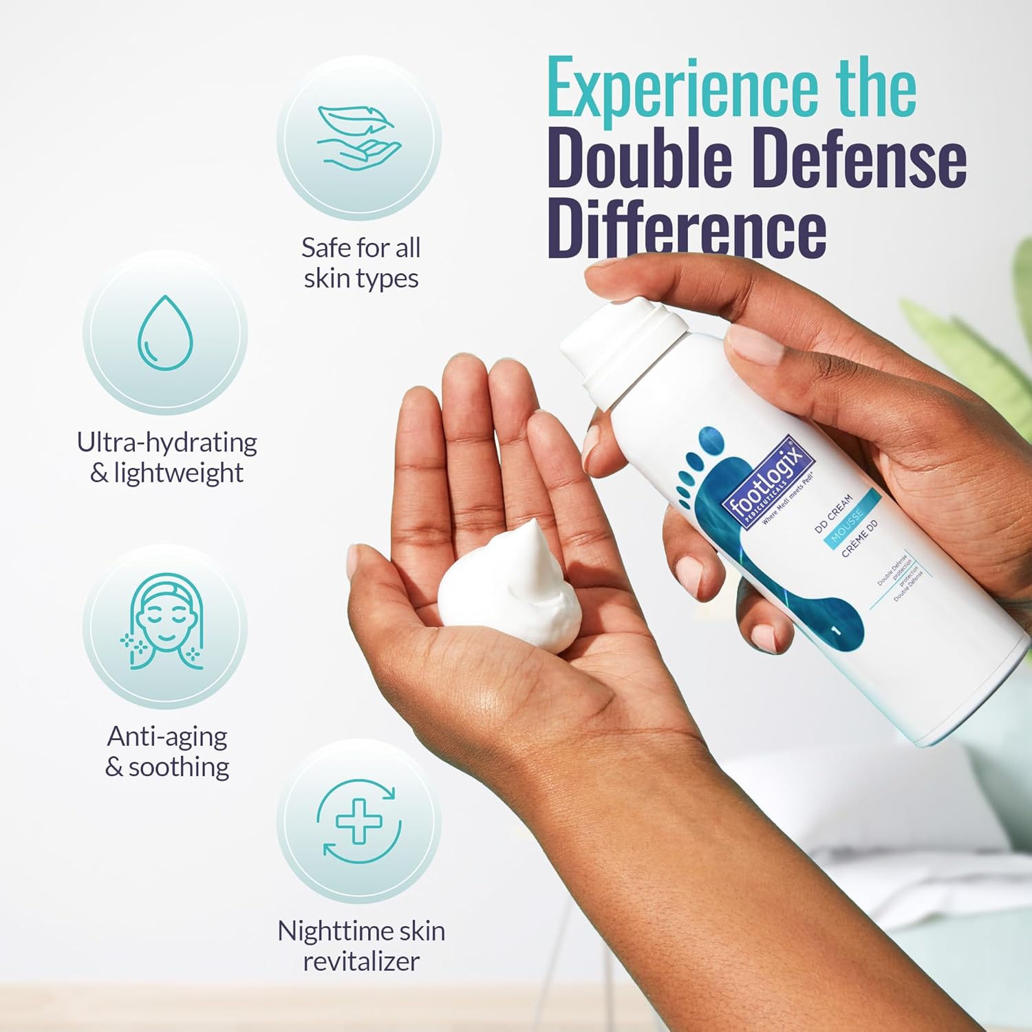 DD is for “Double-Defense” treatment for the feet formulated with Dermal Infusion Technology®. This super hydrating, yet lightweight, unique mousse with Urea is both anti-aging and rejuvenating. It is absorbed immediately, locking moisture into the skin and healing multiple cracks. Containing Spiraleen® it provides anti-microbial properties that relieve skin irritations. This rich mousse revitalizes hydrates and smooths the skin including, but not limited to dry or sensitive skin. Great product for night care.