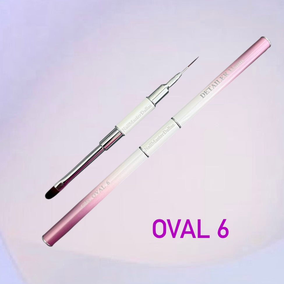 The other end is 6mm OVAL flat gel brush, perfect for wider applications, broad gel or color coverage, or any work with acrygel, polygel or extensions' materials (don't forget to use alcohol when applying any hard gelsl!).