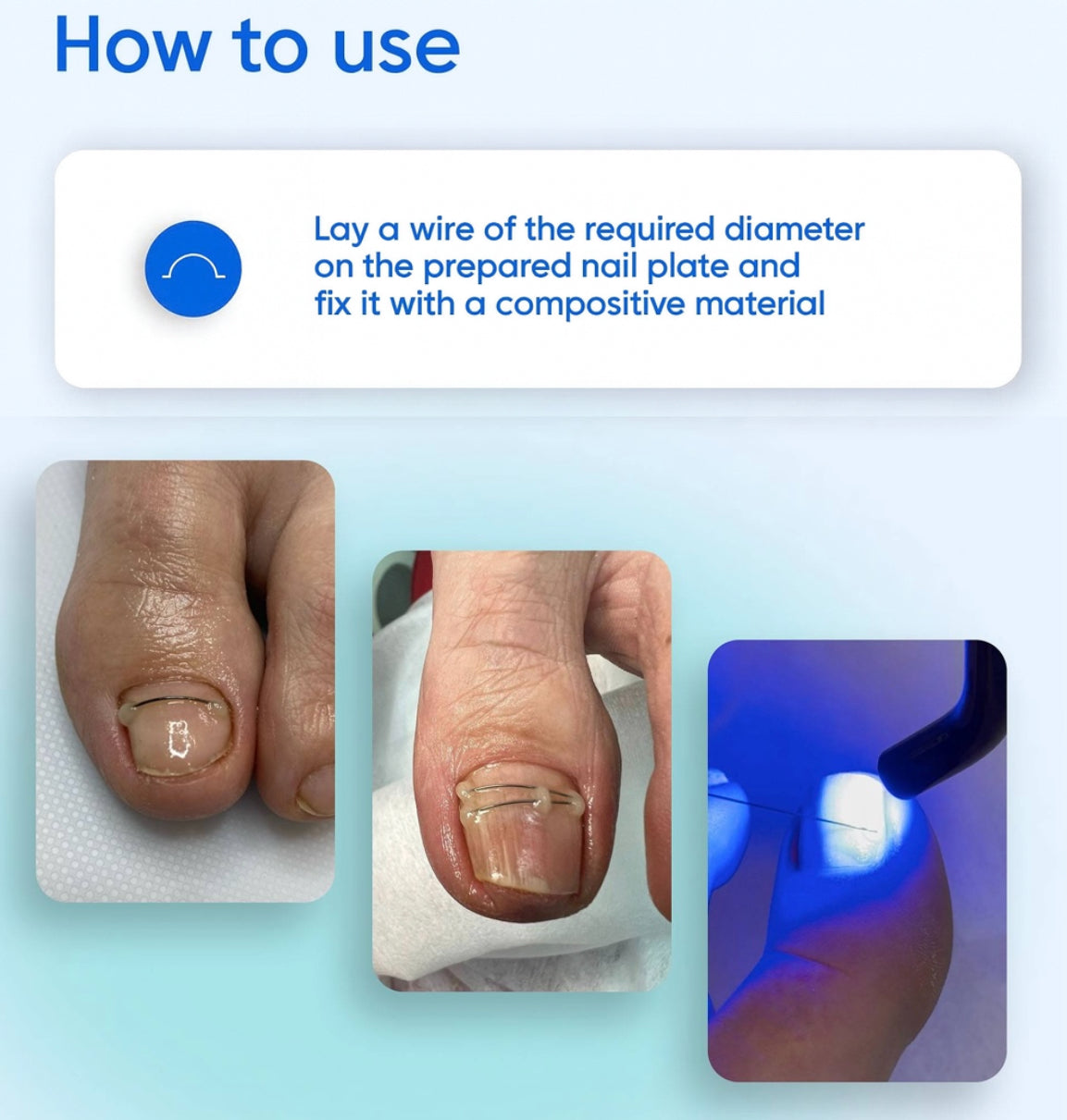 Select the required thickness of the wire. Prepare the nail plate and fix the wire according to the standard technique.
