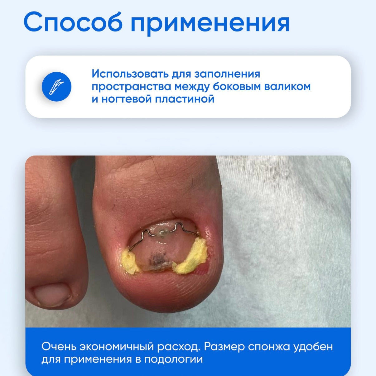 PURPOSE: To Provide local hemostatic and antiseptic action for various skin injuries. Used in tamponades of ingrown nails to prevent infections and decrease pain.